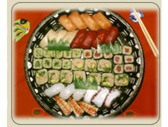 Deluxe Rainbow Roll Sushi Platter of 44 pieces: 8 piece Tuna Roll, 8 piece California Roll, 8 piece Cucumber Roll, 8 piece Vegetarian Roll, 12 piece Nigiri. Gift certificate good thru June 2010. Must order at least 48 hours in advance.