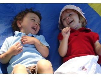 Kids at Work "Sun Sessions" are lively, fun outdoor music/movement classes for kids ages 0-14 months and 1-4 yrs old, along with their caregiver. Sun Sessions are held on a colorful parachute under a large shady tree at Hudson River Park (@ Christopher St.), Washington Square Park, and Battery Park (near Tribeca) during summer 2010. They are taught by (2) professional teachers, one of whom plays guitar. Sun Sessions are drop in classes and pack-holders may attend class on any day or time. Sun Sessions will be held M-Th mornings from June through August only.