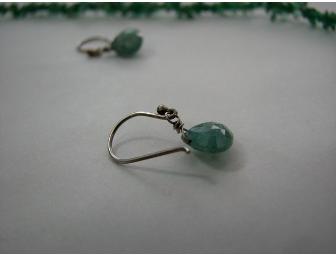 Genuine natural emerald chips (from Brazil) necklace with a handmade sterling silver clasp with a pair of simple Emerald Briolette earrings, also in sterling silver.