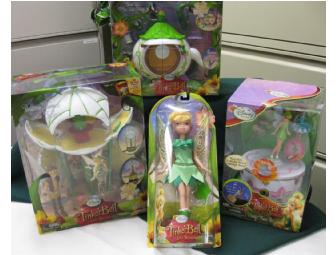 Your child will enjoy the Tinker Bell Doll, Tinker Bell Tea Kettle Cottage, Tinker Bell Music Box, and Tinker Bell Balloon Playset with Terence.