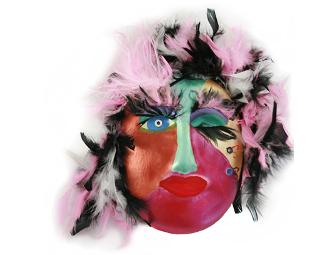 Marlan Thomas Lightner created this mask for Brio Tuscan Grill. He graduated from Denver School of the Arts and Metro State College of Denver where he received a Bachelor's degree in music and is a jazz and classical saxophonist. His mask, Larletta, depicts a woman full of life, overcome by caring for an ill father and a newborn. This mask comes with a $100 gift certificate to Brio Tuscan Grill.