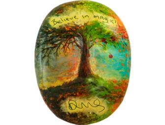 Actor Devon Murray is an Irish actor known for playing Seamus Finnigan in the Harry Potter films. During a Colorado visit, her wrote "Believe in Magic" on his mask painted by Denver artist Ron Zito. Zito, who has exhibited widely in premier galleries throughout Colorado, has won several awards for his work. He says he tries to capture the meaning of the Latin phrase finitum capax infiniti -- "the finite is capable of the infinite"- meaning there is no access to the infinite except through the finite. Devon's mask comes with autographed photos.