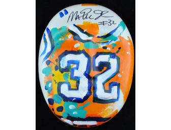 Nationally-acclaimed sports and celebrity artist Malcolm Farley created Lakers' star Magic Johnson's mask. This mask comes with a 30" by 40" giclee of Magic Johnson by Malcolm Farley and a basketball signed by Magic Johnson.