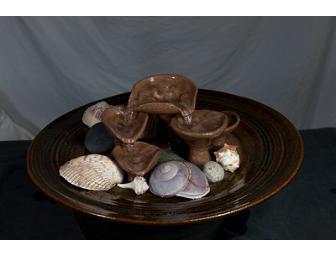 Enjoy the relaxing sounds from this table top fountain with pump, shells and river rocks made by Don Jensen. Just plug it in and enjoy. Be sure to rearrange the shells and rocks on a regular basis to change the look...and the sound!