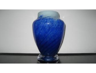 Blue & white glass vase hand blown by local artist Karen Sutherland