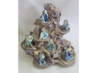 This hand-sculpted piece by WSP Parent Carolyn Siegel with its swirls of blue, turquoise, purple, and yellow will add fancy and delight to your nature table or desk.