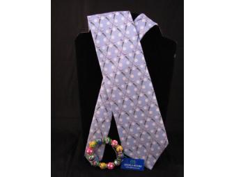 It’s a leisure-time favorite; the best-selling, hand-painted bracelet features golf themes and each bead is individually hand-painted. The matching 100% silk tie from the Angela Moore’s collection has a handy self-loop to make sure it always looks smart!