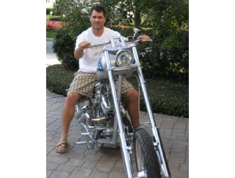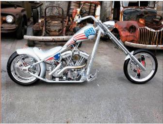 To make sure Adam's bike would have plenty of reliable power, Bobby bolted a 110ci RevTech motor, backed up by a RevTech six-speed transmission, between the framerails and then used a Primo clutch and 3-inch open belt primary to help transfer power to the rear wheel. Knowing a chopper just wouldn't be a chopper without a set of loud pipes, Bobby felt a set of 187 pipes from LA Choppers was the perfect choice. He capped off the Mikuni carb with a velocity stack from West Coast Choppers.
