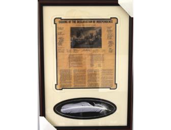 Framed Commemorative Declaration of IndependenceWith Quill Pen! An identical replica of the pens used by the great men who signed The Declaration of Independence on July 4th, 1776.