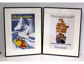 Set of 2 Disney Fantasy Land Posters including Matterhorn and It's A Small World. Framed 14" x 18"