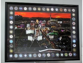 What happens in Vegas may stay in Vegas but bid on this item to remind you of the Las Vegas Night Life. A beautiful framed photograph surrounded by poker chips from popular casinos.