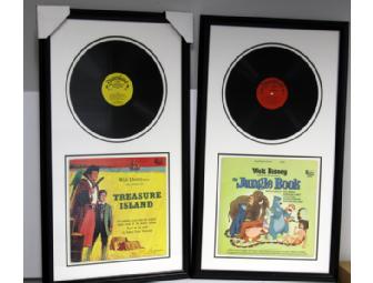 A set of two Disney LP framed records including Treasure Island and the Jungle Book. Both framed records include the LP record and album cover. Frame is 19" x 33"