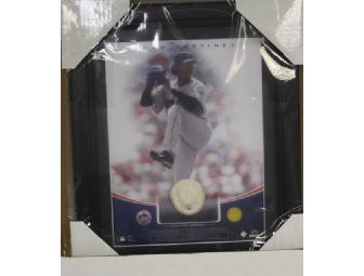 Framed Pedro Martinez picture with piece of a game ball. 18 of 50. Frame is approx. 14" x 17"
