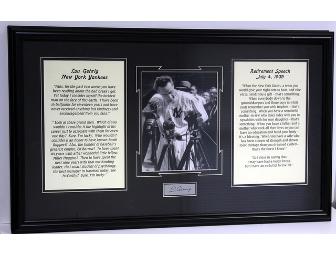 On July 4, 1939, Lou Gehrig delivered his, now infamous, retirement speech after learning of his debilitating disease. Despite his bad break. He still proclaimed to be the luckiest man on the face of this earth. This collectors tribute features the famous photo of Gehrig's address, along with the entire text of his speech Framed Lou Gehrig photograph with his 1939 Retirement speech. Truly an inspirational testiment to the man's many gifts. Frame is approx. 32" x 20".