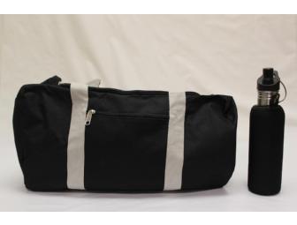 If you're in need of a new gym bag, we have the perfect one for you. This bag comes with a matching waterbottle to keep you hydrated throughout your workout. The nylon bag is black with white accents and has a hand and shoulder strap to carry any way you want. It also has a smaller outer pocket for your keys, cell phone, ipod or anything else you don't want to lose track of! Waterbottle comes with an insulating cover to keep your drink cold while you warm up at the gym. Bid today on this handy bag and waterbottle set!