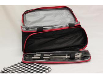 Ever go to a tailgate and realized you forgot your grill gear at home? Always be ready for grilling on the go with this handy travel grill set. It comes in a black carrying case with red trim and has extra space for any other items you need to bring with you. Set comes with a stainless steel spatula and tongs and even a reusable checkered tablecloth!