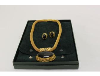 This beautiful jewelry from Barbara Garwood is handcrafted by artisans using Mongolian traditional art form. Each design of enamel and filigree work takes several days, and reflects their extensive training along with the art of their culture. Enjoy this piece of wearable art...bid today on this gorgeous necklace and earring set!