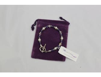 This beautiful bracelet is made of Swarovski crystals, freshwater pearls, and sterling silver. Designed by Merle Solomon, this bracelet is a perfect and lovely gift for yourself or a friend!