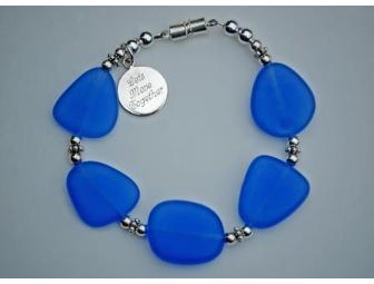Show your support for the mission of the Arthritis Foundation with style! This fun and funky bracelet is made with free form seaglass, sterling silver antique balls and spacers and finished with a sterling silver magnetic clasp for easy closure. This bracelet includes a "Let's Move Together" engraved disk.