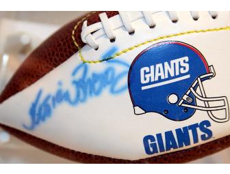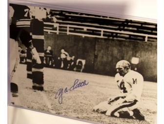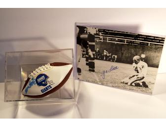 An autographed reprint/photo of YA Title and an unknown signature on a Miniture Football.