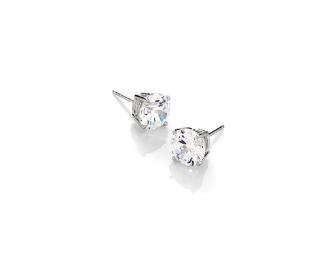 Round, brilliant-cut cubic zirconium secured in a four-prong sterling silver setting add sparkle to any day or special event. Extra-heavy post backs for security. Gift box included.