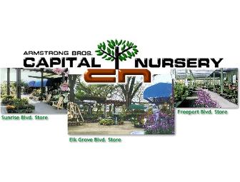 $20 Capital Nursery gift certificate. Along with advice and information about flower selection, lawn care, fruits and vegetables, insects, weeds and diseases, you'll find at Capital Nursery an easy way to learn about new plant varieties for your landscape.