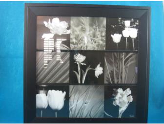 This stunning piece of artwork features 9 panels in 3 rows, each row trimmed in slender black molding. Top and bottom rows are slightly raised from the middle row. Measures 19-1/2" square.