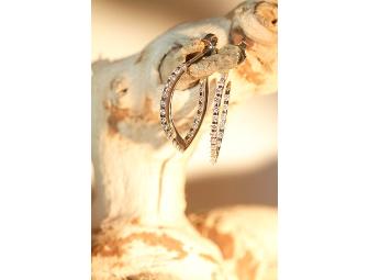 Your someone special will love these beautiful diamond earrings! A dazzling pair of In/Out, Open Hoop, Diamond Earrings. Designed in 14 karat white gold and set with .72 carats of Round Brilliant Diamonds, SI1 clarity, G color and about 1 inch long.