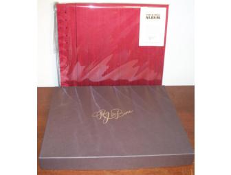 We are proud to auction off this 9x12x12 paper page album by Rag & Bone Bindery located in Pawtucket, Rhode Island. This album has black paper pages and features a red rose Dupimi Silk cover.