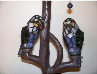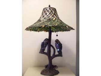 This Tiffany-inspired Baroque-style lamp will be the perfect addition to any room. Be sure to showcase it at all times as this is definitely a piece that doesn't belong in a box! This is a must see item with the lamp not only lighting up but the birds on both sides lite up as well.