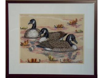 This hand-stitched needlepoint depiction of Canadian geese is sure to make a great addition to any cozy spot in your home. You can see all the hard work put into this work of art.