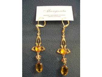 This set of delicate topaz glass earrings feature vintage glass beads that date back to the 1940s. Wear a piece of history and make a statement everywhere you go with these great earrings from Margarita.