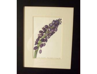 Bring the garden inside this winter with this beautiful watercolor-on-paper by Matthew Bird. With vibrant colors and an accurately detailed depiction of a grape hyacinth, this picture is sure to cure those winter blues!