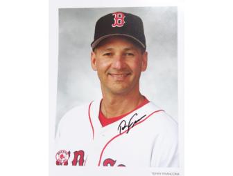 This auction is for an authentic autographed photo of Boston Red Sox manager Terry Francona. Francona has helped to lead the Red Sox to two World Series Championships, assisting in breaking the mythical "Curse of the Bambino." This photo is a great addition to any Red Sox fan's hall of heroes!