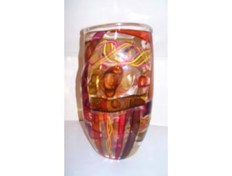 The Waterman Vase is done in a Murrini and Cane Italian Technique.