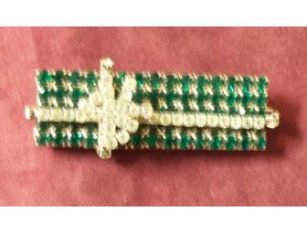 Although the holidays aren't here just quite yet, get ahead of the game and bid on this exquisite rhinestone pin. With both green and gold Swarovski crystal rhinestones, this pin will sparkle at any holiday party you attend.
