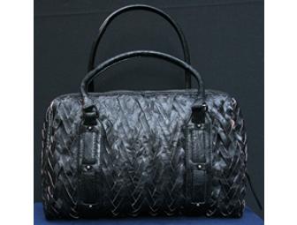 Sondra Roberts hand-woven structured satchel handbag with two straps to fit on shoulder or arm. This bag features a zipper top closure with inside pockets and a zipper compartment.