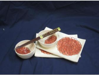 The Treehouse Green Gifts does its part to improve the natural world by committing to green business principles in their operations as well as their product selection. Their items are produced by hand one at a time, and are often produced by a single artisan, whose pieces tend to be slightly different due to their unique nature. Bid now and see the beauty of this Handmade Ceramic Sushi Tray set from Treehouse Green Gifts!