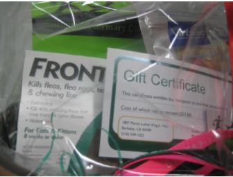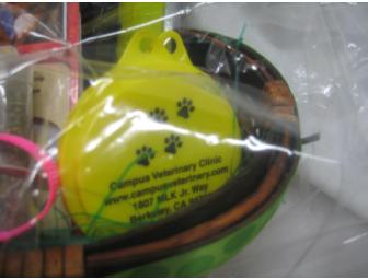 Campus Veterinary Clinic is a full-service veterinary medical facility, located in Berkeley, CA. The professional and courteous staff at Campus Veterinary Clinic seeks to provide the best possible medical care, surgical care and dental care for their highly-valued patients. Bid now and pamper your pet with this complete care gift basket from Campus Veterinary Clinic. The basket includes a Six (6) month supply of Frontline Plus, a coupon for a free physical exam, a Furminator brush, dental treats, a catnip Kong toy and more! Don't miss out, bid today!
