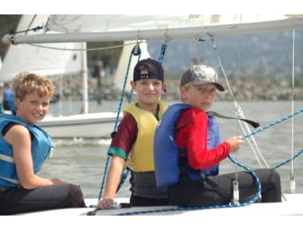We offer Sailing Camp for beginning, intermediate and advanced sailors. Campers skipper our fleet of Coronado 15 sailboats on the beautiful SF Bay and have a great time getting to know our enthusiastic and highly skilled staff. Students sail with two(2) to four(4) kids per boat under the close supervision of the instructor. All of our sailing camps are held at the UC Aquatic Center, in the Berkeley Marina.