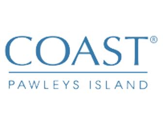 Look great at the beach or on the golf course after using your $75 gift certificate to COAST Apparel. Includes a size XL chocolate brown polo shirt and a navy visor.