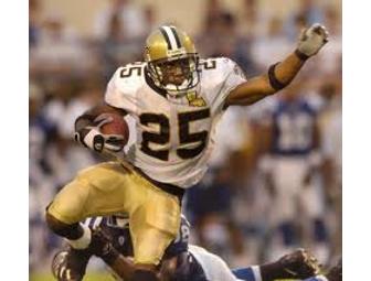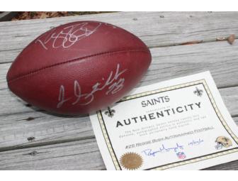 Reggie Bush, the Saints star running back, was a former USC Trojan star. In 2005, he gained 2611 all purpose yards leading to his selection by the Saints as the #2 overall pick in the NFL Draft. Jon Stinchcomb is the starting right offensive tackle for the Saints and was a first team All-American at the University of Georgia. He was a second round pick in the 2003 NFL draft. You will treasure this football signed by both stars for years to come!