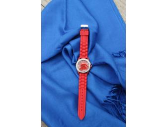 Follow the Hawks and dress with school spirit! Sport a red jelly rhinestone bezel watch and wrap up with a blue pashmina.