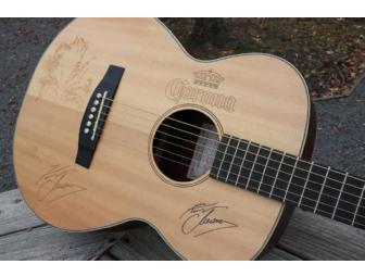 This Takamine acoustic guitar is known as the Kenny Chesney model. Signed by country music artist, Kenny Chesney, this guitar is sure to be a conversation piece!