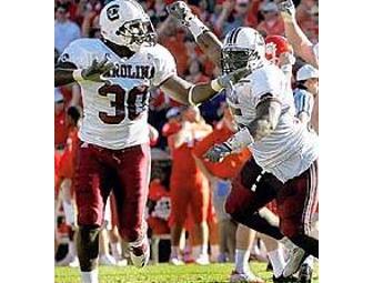 Score "extra points" with your little football fan when you give a birthday party with the Gamecock football players in attendance! The party will be held in Michael and Michelle Littlejohn's Cock-a-boose, located in the Touchdown Zone. The date of the party must be mutually agreed upon at the discretion of the players and the hosts. Up to 30 children, ages 4-10 years old.