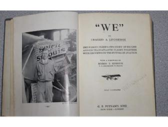 This is a 1927 hardcover copy of "We", written by Charles Lindbergh, giving the complete account of his historic flight across the Atlantic. The copy is an ex-library copy, in good condition, and Charles' daughter, Reeve, has offered to inscribe it for the winning bidder.