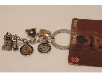 Yorkshire Terrier lovers will find their keys easily with this key ring. It has a miniature yorkie, and other adorable charms.