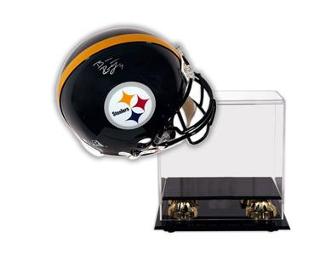 Bids are for a limited edition Ben Roethlisberger hand-signed official full size Pittsburgh Steelers helmet with a deluxe display case. "Big Ben" helped lead the Steelers to the greatest post-season run in NFL history and an NFL Championship by winning Super Bowl XL - in only his 2nd year in the NFL. Roethlisberger set numerous rookie quarterback records as a rookie in 2004. Big Ben is arguably one of the best quarterbacks in the NFL today. Certificate of Authenticity included.