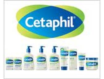 Assortment of approximately 10 full-size Cetaphil products including mouisturizers, sublock. Hand creams, bar soaps, and cleanser.