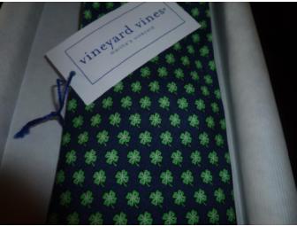 Let this be your new lucky tie! Vineyard Vines Luck of the Irish Silk Tie. It's navy with green four leaf clovers!